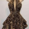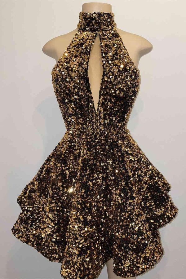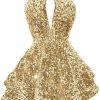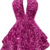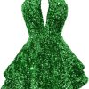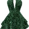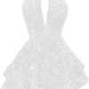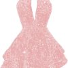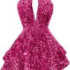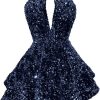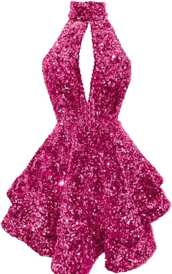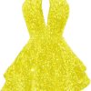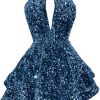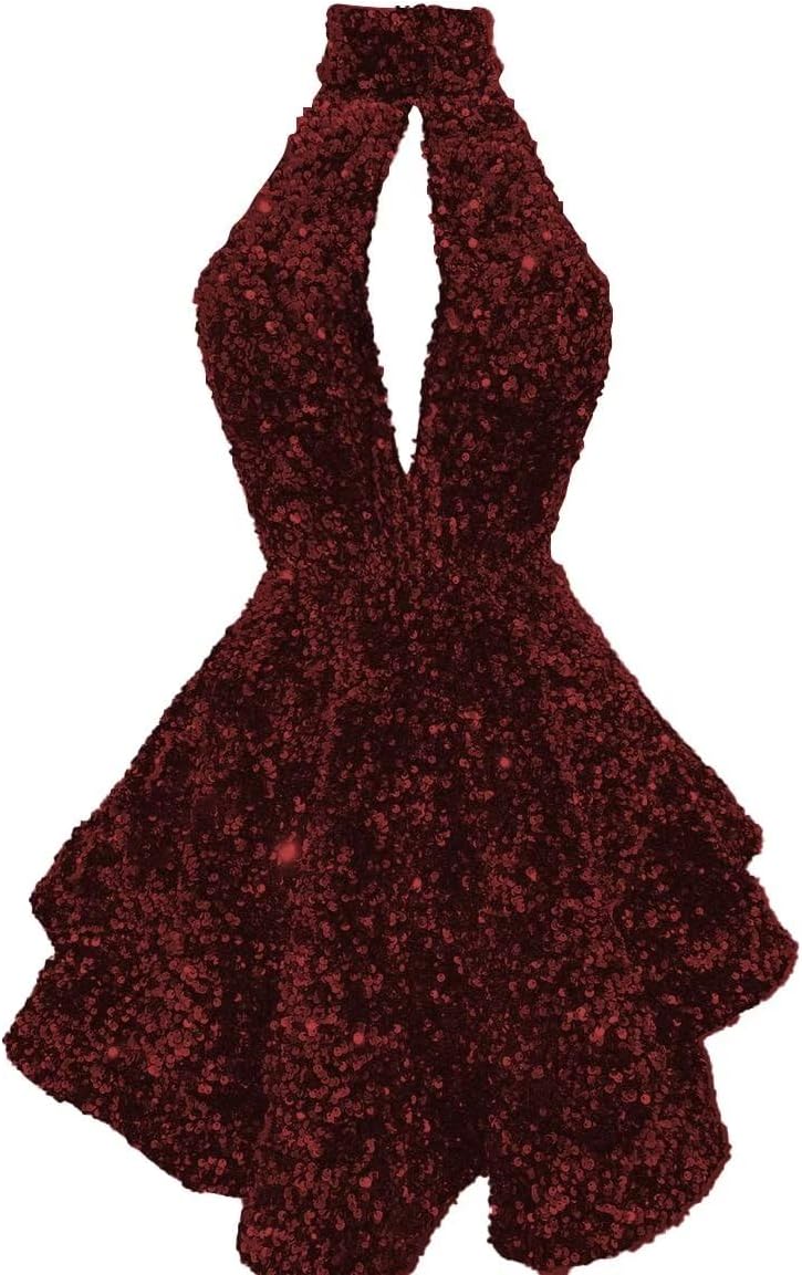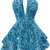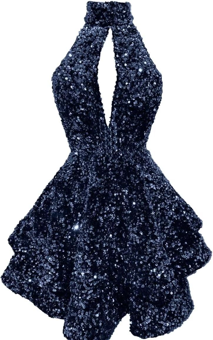 Halter Sequin Homecoming Dresses Short Sparkly Glitter Cutout Mini Backless Tight Bodycon Prom Cocktail Dresses for Women