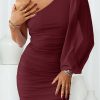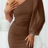 Jewel Mermaid Lace Applique Sequined Floor-length Half Sleeves High Split Prom Dress